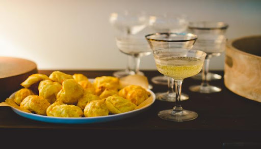 Bake the gougères for 5 minutes and then turn the heat down to 350°F. Bake for another 20-25 minutes, rotating the pans once during baking. The finished gougères will be puffed, deep golden-brown, and dry to the touch (the cheese may still be bubbling a bit). They will also feel light and hollow when picked up.