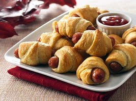 2 Separate dough into 16 triangles. Cut each triangle into thirds lengthwise. Place sausage on shortest side of each triangle. Roll up, starting at shortest side of triangle and rolling to opposite point. On ungreased cookie sheet, place rolls point side down.