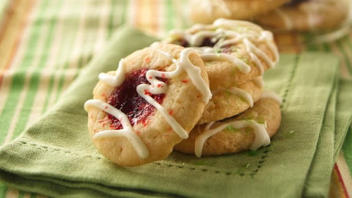 Roll dough into 3/4-inch balls; place 2-inches apart on ungreased cookie sheet. Using thumb or handle of wooden spoon, make indentation in center of each cookie. Spoon about 1/4 teaspoon jam into each indentation.