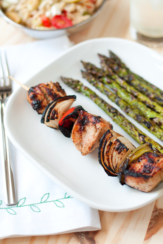 5. Lightly oil the grill grate. Grill skewers for 10 minutes, turning as needed, or until meat is cooked through and vegetables are tender.