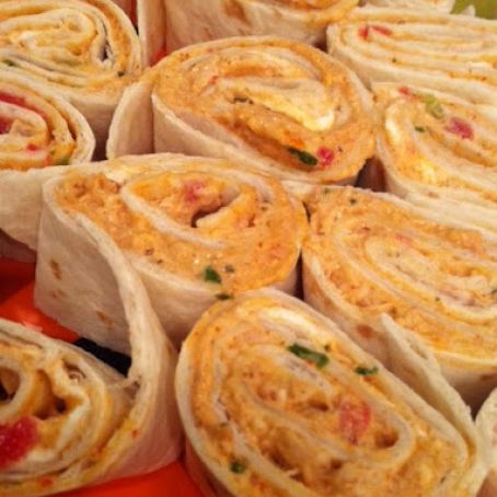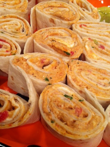 When ready to serve, spread 2 heaping spoonfuls of filling on each tortilla. Roll up and cut into slices.