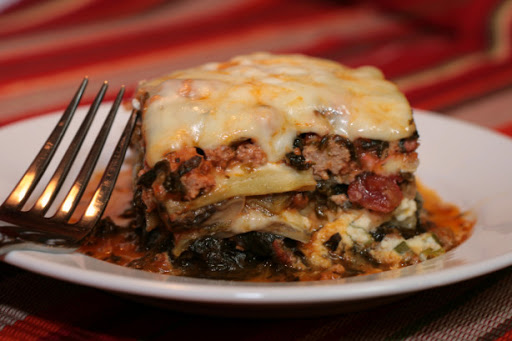 Spread 1/3 of meat sauce in bottom of 9” x 13” glass pan.