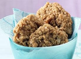 Cream butter, add sugar slowly and beat until light and fluffy. Add eggs and vanilla. Beat well. Sift together flour, salt, soda and baking powder; add (stir in) in 4 parts. Mix in oats and coconut. Drop by teaspoons onto ungreased baking sheets. Bake in moderate oven, about 375° for 12 to 15 minutes, or until golden brown.