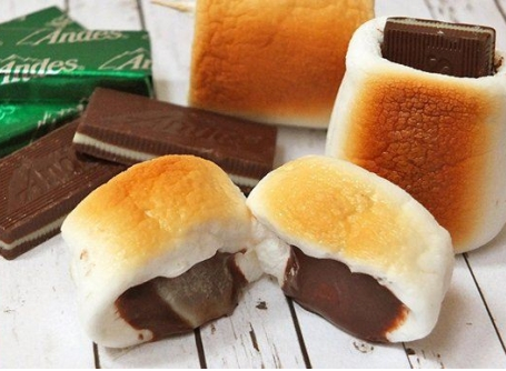 Immediately push the unwrapped mints into the top of the warm toasted marshmallow.