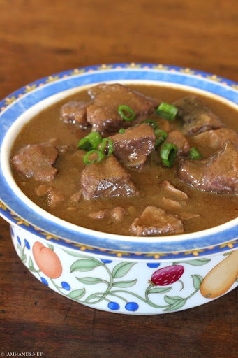 Mix all ingredients and pour over the meat. Set crock pot to low for the day. (This will be about 6 to 8 hours. I thought it was perfect at 6 hours and a bit overdone and chewier at 8 hours.)