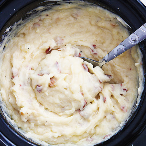 Add sour cream, milk, salt, and pepper to potatoes. Use a hand mixer to blend together all ingredients. Give them a taste and add more salt if desired. Serve plain, or with any favorite toppings such as gravy, or cheese and bacon. OR - check out my brand new variation - Slow Cooker Buttery Garlic Herb Mashed Potatoes!