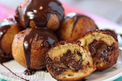 These balls are best served warm, but not hot. Garnish them with a drizzle of chocolate sauce, a side of whipped cream, a sprinkling of powdered sugar, or nothing at all!