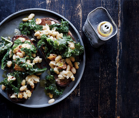 Serve beans and greens mixture over toast, drizzled with oil.