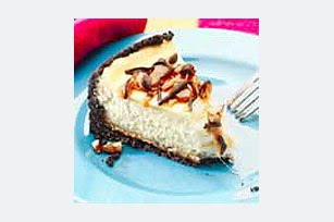 MICROWAVE reserved caramel mixture 1 min.; stir. Pour over cheesecake. Melt chocolate as directed on package; drizzle over cheesecake.