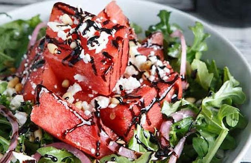 This refreshing summer salad takes full advantage of the watermelon season, and compliments them with briny and sour elements.