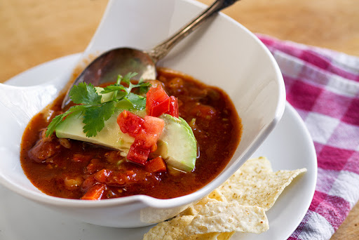 Spicy Red chicken posole cooked all day in a crock pot or slow cooker melds these flavors perfectly to give you a soup bowl full of smoky, spicy, chicken and vegetables that will make your taste buds wake up and warm you from your head to your toes on a cold winter's day.