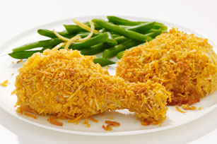 MOISTEN chicken with water. Coat with cheese mixture, 1 piece at a time. Lightly press cheese mixture onto both sides of chicken. (Chicken will not be completely coated.)