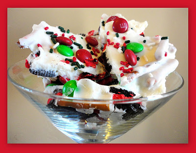 - 14 whole Oreos, broken up (get the Christmas ones if you can)