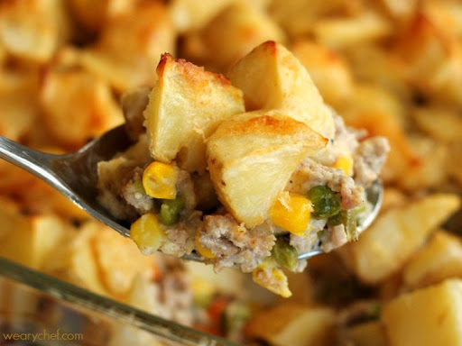 Creamy Meatballs and Potatoes Mallow Sweet Potato Bake