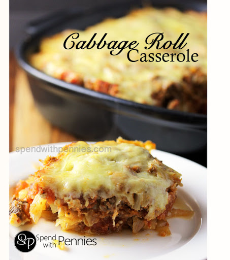 Place ½ of the cabbage in a large casserole dish. Top with ½ of the meat sauce. Repeat layers. Cover with foil and bake at 375 for 45 minutes.