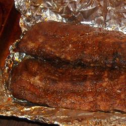 Mix all spices together and rub onto both sides of ribs. Wrap in saran wrap and let sit in fridge over night. Next day wrap in foil and bake at 275F for 2 hours and 45 minutes. Remove from oven and take out of foil put in baking dish and put your favourite barbeque sauce on top this time leave uncovered and bake another 45 minutes at 275 f.