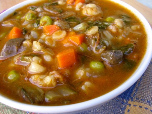 Full of chunks of tender beef, earthy mushrooms, chewy barley and an array of colorful vegetables, this is a delicious low calorie meal in a bowl that will warm you inside and out.