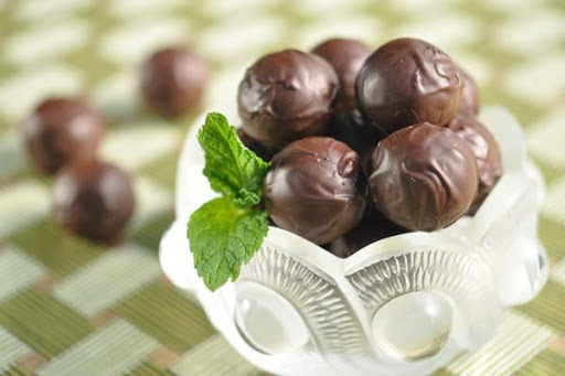 Using a melon baller scoop out ganache into round balls. Remaining ganache can be pressed and rolled by hand into balls. Set aside.