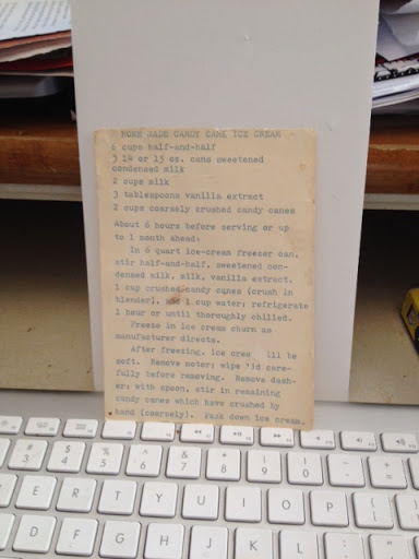 After freezing, the ice cream will be soft. Remove motor, wipe lid carefully before removing. Remove dasher. With a spoon, stir in remaining candy canes which have been coarsely crushed by hand.Transfer the mixture to a container with snug fitting lid. Pack the ice cream down and seal with the lid.