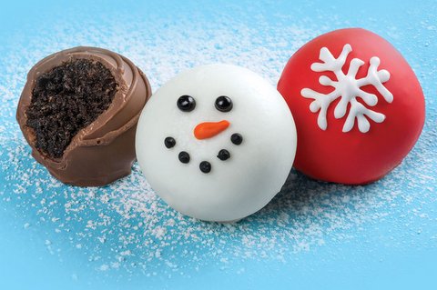 Shape into 48 (1-inch) balls. Freeze 10 min. Dip balls in melted chocolate; place in single layer in shallow waxed paper-lined pan. Decorate with remaining ingredients to resemble snowmen.