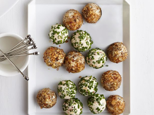 Mix 8 ounces softened cream cheese, 1 cup shredded gouda, 2 chopped cooked bacon slices, 1 teaspoon Worcestershire sauce, 1/2 teaspoon lemon zest, and hot sauce to taste; chill. Form into 1-inch balls; roll in chopped chives.