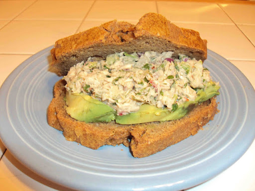 "I’m declaring this last batch of almond butter bread as the winner of my 2+ years searching for a decent paleo bread substitute. The first time I made it, I still had some problems (like it kept falling apart), but I tweaked the recipe, and now I finally have a bread that is tasty, doesn’t fall apart, and for the very first time, tastes as good toasted as it does NOT toasted (previously, it was only enjoyable toasted). As evidenced here by this tuna and avocado sandwich (all organic)