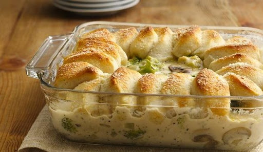 Stir in the Alfredo sauce, milk, chicken, broccoli, and basil.