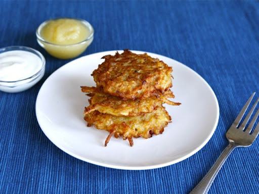This Potato Latke recipe combines the rich savory flavors of melted butter, russet potatoes, and matzo meal with the sweet tang of Fuji apples and cinnamon to make the most delicious way to start any holiday meal. This recipe can feed a crowd of hungry guests and loved ones, and is sure to a hit on your Hanukkah table year after year.