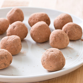 2. Using heaping teaspoon measure, scoop truffle mixture into 24 portions, transfer to large plate, and refrigerate until firm, about 30 minutes. Roll each truffle between your hands to form uniform balls (balls needn’t be perfect).