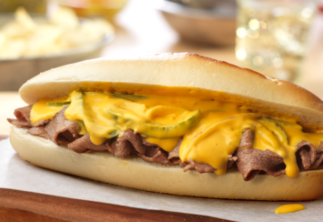 Cheesesteak lovers this ones for you! Fresh hard rolls hold thinly sliced sirloin steak that is topped with a fantastic, cheesy veggie mixture. These sandwiches are so easy and delicious theyre guaranteed to become a family favorite!