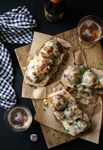 Open-Faced Beef Stroganoff Meatball Sandwiches