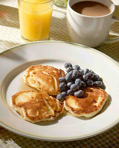 In a large, nonstick skillet, melt 1 tablespoon butter over medium heat. Drop batter, 1/4 cup at a time, into pan. Cook until golden brown and set, 2 to 4 minutes. Flip pancake, and cook 2 to 4 minutes more. Repeat with remaining batter. Serve immediately, with maple syrup and berries.