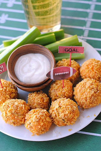 Place balls on sheet and bake for 20 to 25 minutes, until golden. Serve with blue cheese or ranch dressing and enjoy!