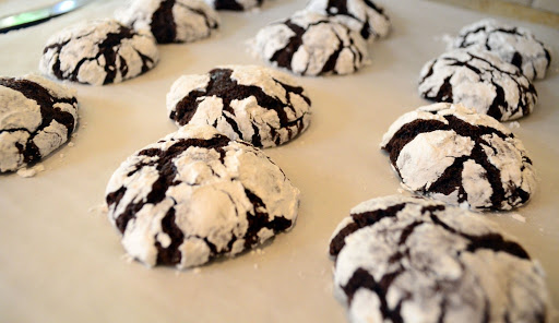 Preheat oven to 350 degrees. Line cookie sheets with parchment paper. If not using parchment paper, coat the cookie sheets with cooking spray. Place confectioner’ sugar into a small bowl. Roll dough into one inch balls. Coat each ball in white sugar and then confectioners’ sugar before placing onto prepared cookie sheets.