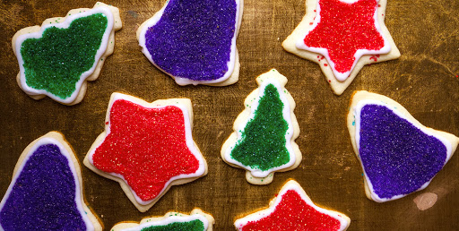 2. Preheat oven to 375°. Dust clean work surface lightly with rice flour and roll half of dough ¼" thick. Cut out assorted shapes with cookie cutters and place cutouts 2" apart on greased tray. Sprinkle with decorating sugar before baking if desired. Bake 6-8 minutes until cookies are lightly puffed and golden at the edges, cool 3–5 minutes on tray to allow cookies to set before removing. Repeat with remaining dough, gathering scraps and re-rolling with additional rice flour as needed. If the dough becomes too soft, place unbaked cookies on trays in freezer 3–5 minutes before baking.