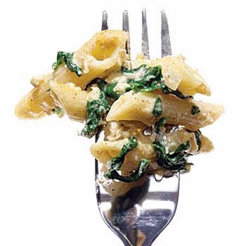In a small saucepan, butter salt over medium-low heat. Add sage and onion and cook until golden, then add frozen spinach and cook for 3 minutes. Stir in heavy cream and ricotta and remove from the heat. Add grated cheese when tossing with pasta.
