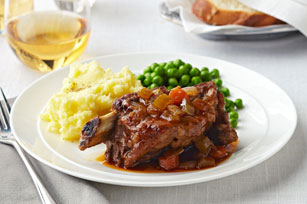 Toss ribs with flour until evenly coated. Heat oil in large skillet on medium-high heat. Add ribs; cook 3 to 4 min. on each side or until browned on both sides. Transfer to 2-L baking dish.