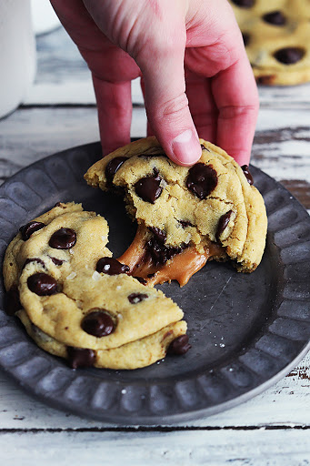 Salted Caramel Chocolate Chip Cookies - Creme De La Crumb