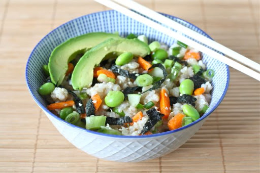 2. Add sesame oil, edamamae, scallions, garlic, ginger, and soy sauce. Cook for 1-2 mins.