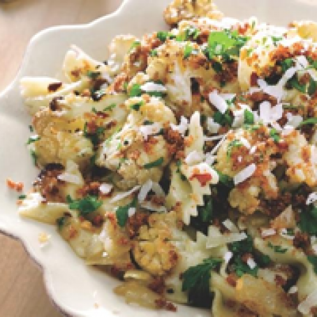 -Add roasted cauliflower, pasta, salt, and pepper to the pan and toss. Stir in pasta water as necessary to make a light sauce.