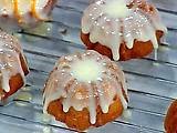 Bake for 15 to 20 minutes or until the top of the cake domes and are slightly golden. Remove from the oven and cool slightly. Unmold the cakes onto wire racks.