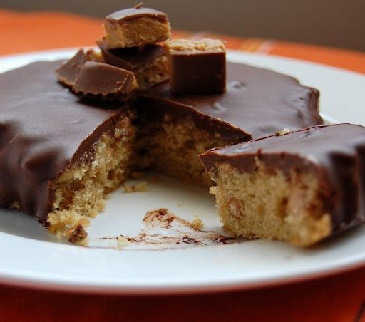 To Assemble: Place cakes on a wire rack. Place rack on top of a cookie sheet so that the extra chocolate has a place to drip onto.Pour chocolate glaze over cake and using a narrow metal spatula, quickly pared it evenly over the top and sides of the cake. Allow chocolate to set to firm consistency before serving. Garnish with chopped peanut butter cup.