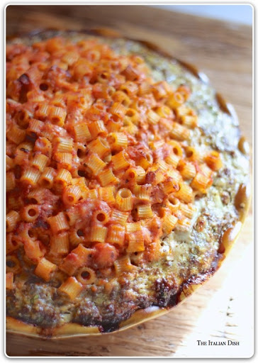 Using freshly ground beef makes for a lighter meat crust. If you want a spicy pasta pie, use marinara sauce with a little red hot chili pepper.