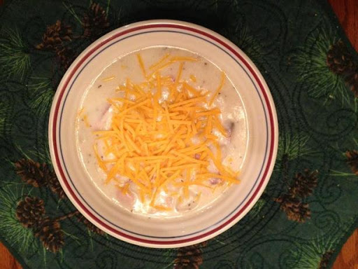 This recipe is a "base" potato soup that is WONDERFUL as is, but with SO many possibilities! I dumped in a can on Niblets corn, and it became chowder! It was wonderful! How about: add Julienne'ed carrots close to the end; or 8 oz Velveeta cheese; or 2 cups cooked broccoli florets; or throw in some cooked shrimp and crab meat & some Cajun seasonings...; or any combination you can think of! YUM! If your hambone isn't too meaty, add a cup of shredded or chopped ham from leftovers.