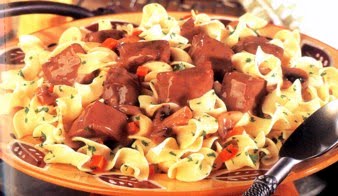 Combine all ingredients except noodles in CROCK-POT® slow cooker. Cover; cook on LOW 8 to 10 hours. Serve over noodles.