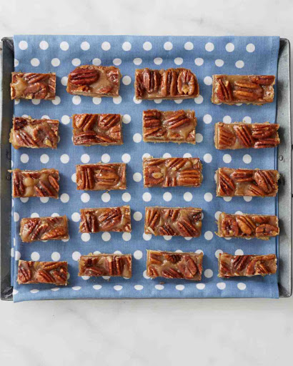 Press dough about 1/4-inch thick into prepared pan. Pierce the dough with a fork. Chill until firm, about 20 minutes. Bake until golden brown, 20 to 22 minutes. Transfer to a wire rack to cool completely. Reduce oven to 325 degrees.