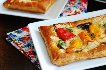Little Puff Pastry Pizzas with Bell Peppers, Mushrooms and Cheese