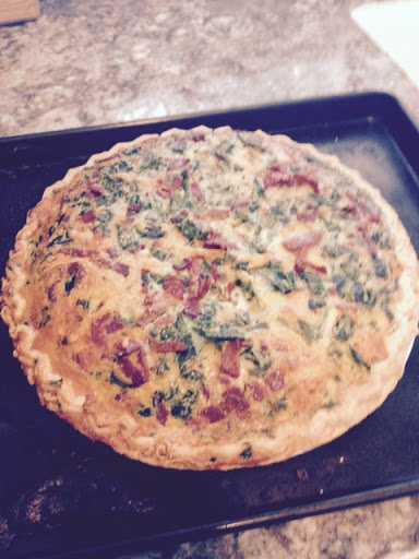 LAYER SPINACH, BACON, CHEESE IN PIE CRUST
