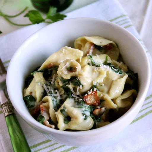 Tortellini with Crispy Bacon and Spinach in Cream Sauce