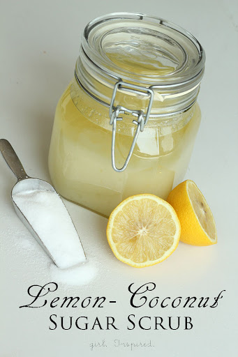 First, I grated a couple lemons and added the zest to a jar of granulated sugar (about 2 cups) while Olivia squeezed in the juice of three or so small lemons. She stirred it together, then poured in the coconut oil. Mix the contents of the jar thoroughly and that’s all there is to it! I keep this sitting next to my kitchen sink for freshening up and feeling fancy after washing the dishes! You might think that the coconut oil would leave your skin greasy, but it totally doesn’t!